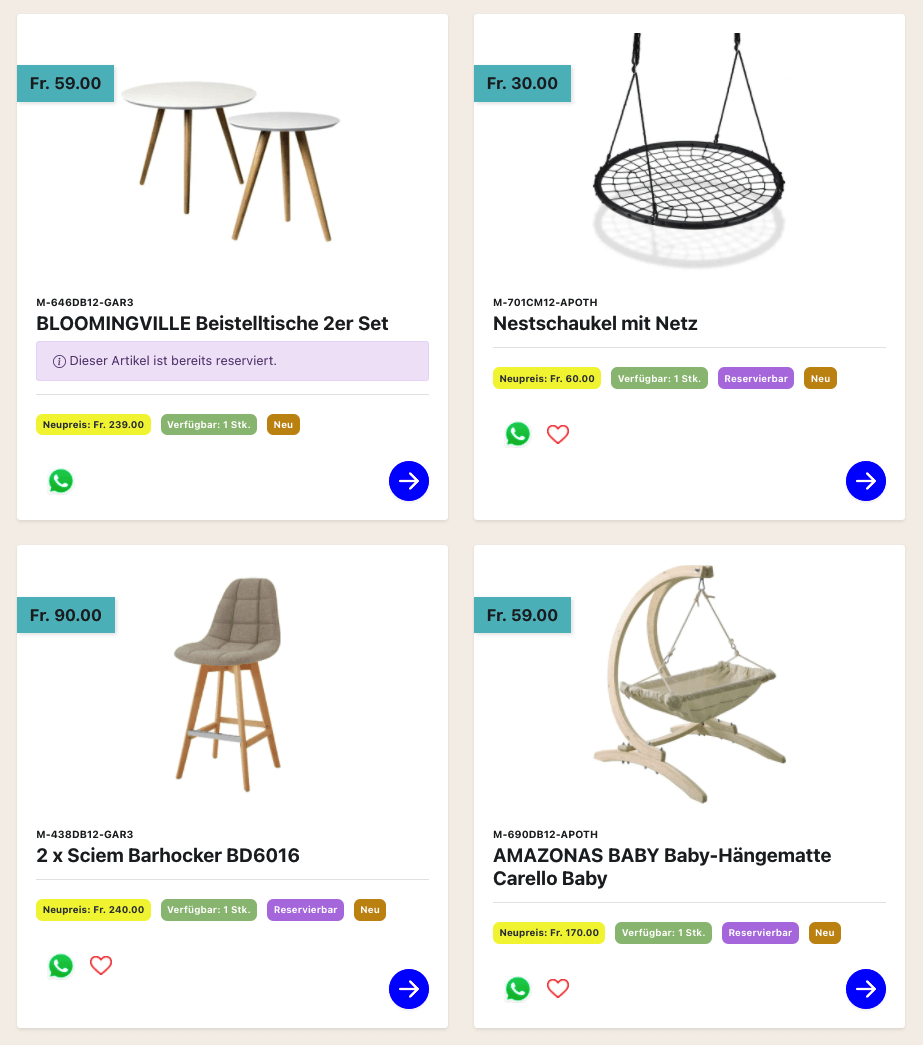 Um Euch einen Einblick in unser Sortment zu geben, inserieren wir hier einige ausgewählte Artikel.